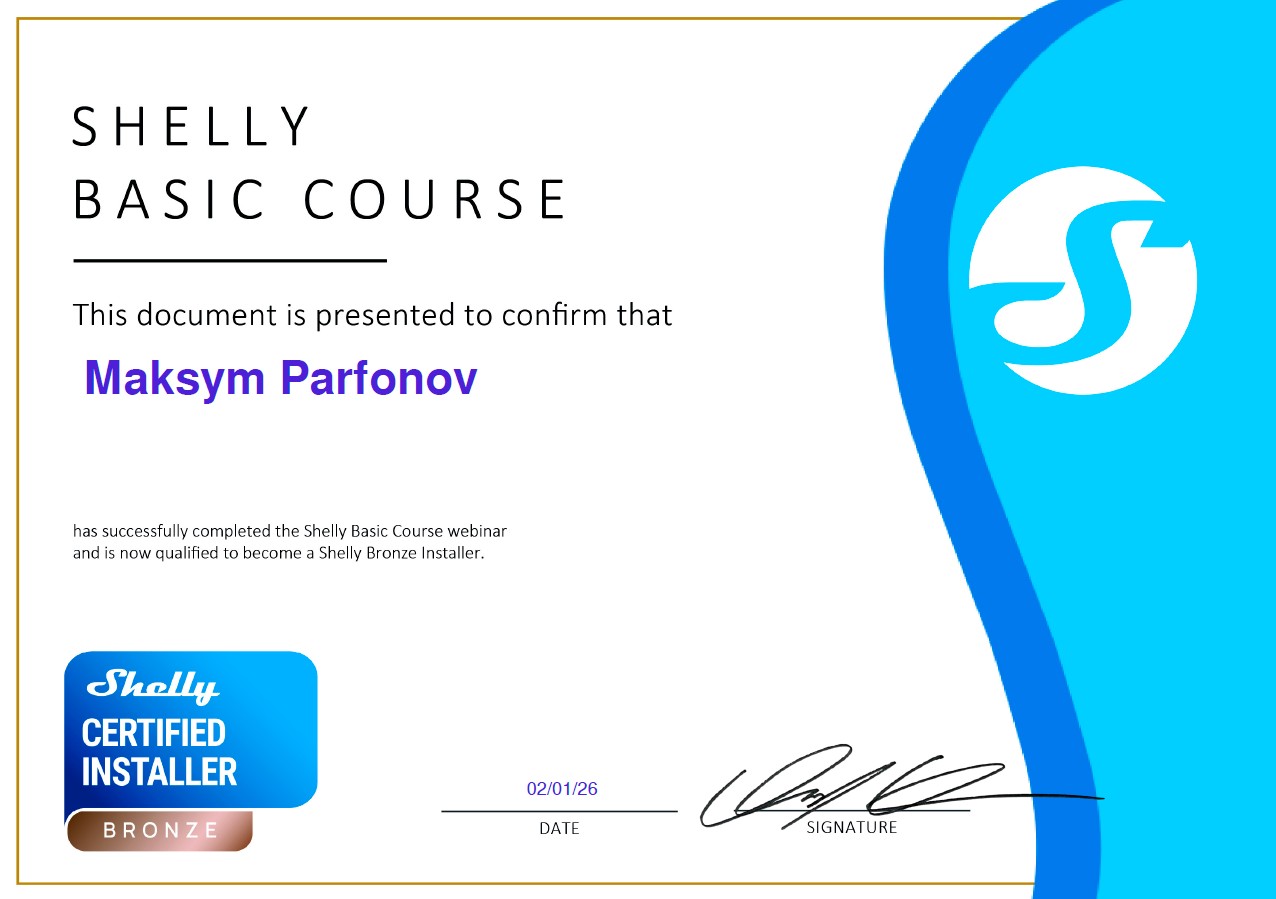 Das Shelly-Zertifikat ist somit keine Formalität, sondern ein Nachweis der Qualifikation und eine Garantie dafür, dass ein Smart-Home-System nach modernen Standards und gemäß den Empfehlungen des Herstellers geplant und umgesetzt wird.