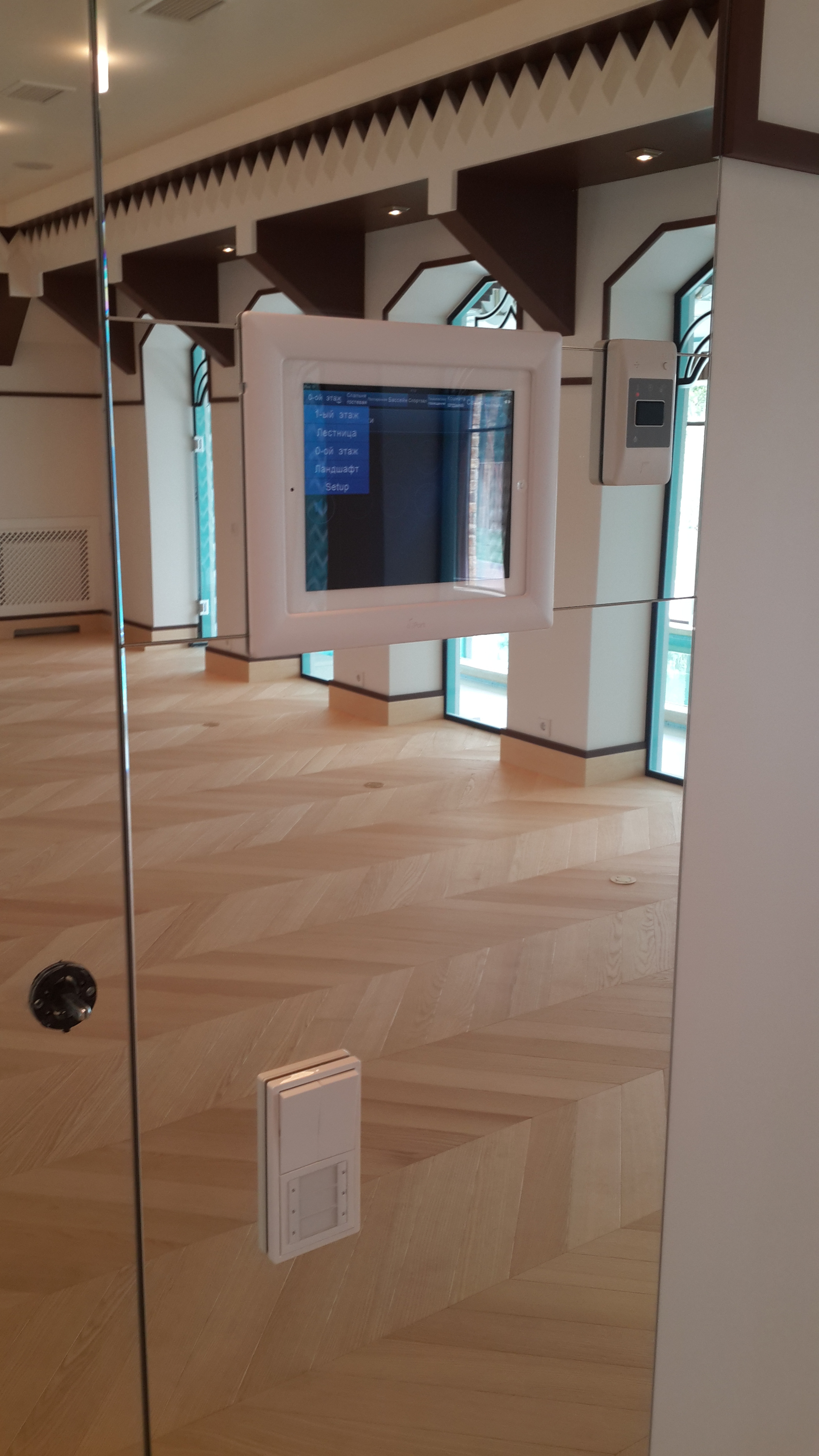 - Умный дом. Монтаж системы управления освещением, отоплением, вентиляцией, кондиционированием, шторами, система мультирум, дистанционное управление сауной, управление бассейном, контроль утечки воды и газа, автоматизация по движению и освещенности, видеодомофония. Разработка проекта, комплектация, установка системы Умный дом, настройка системы. Система управления зданием позволяет управлять радиаторами отопления, системой кондиционирования и шторами с электроприводом. Система управления позволяет поддерживать стабильно заданную температуру в каждом помещении независимо от внешних факторов, температуры на улице, солнца.