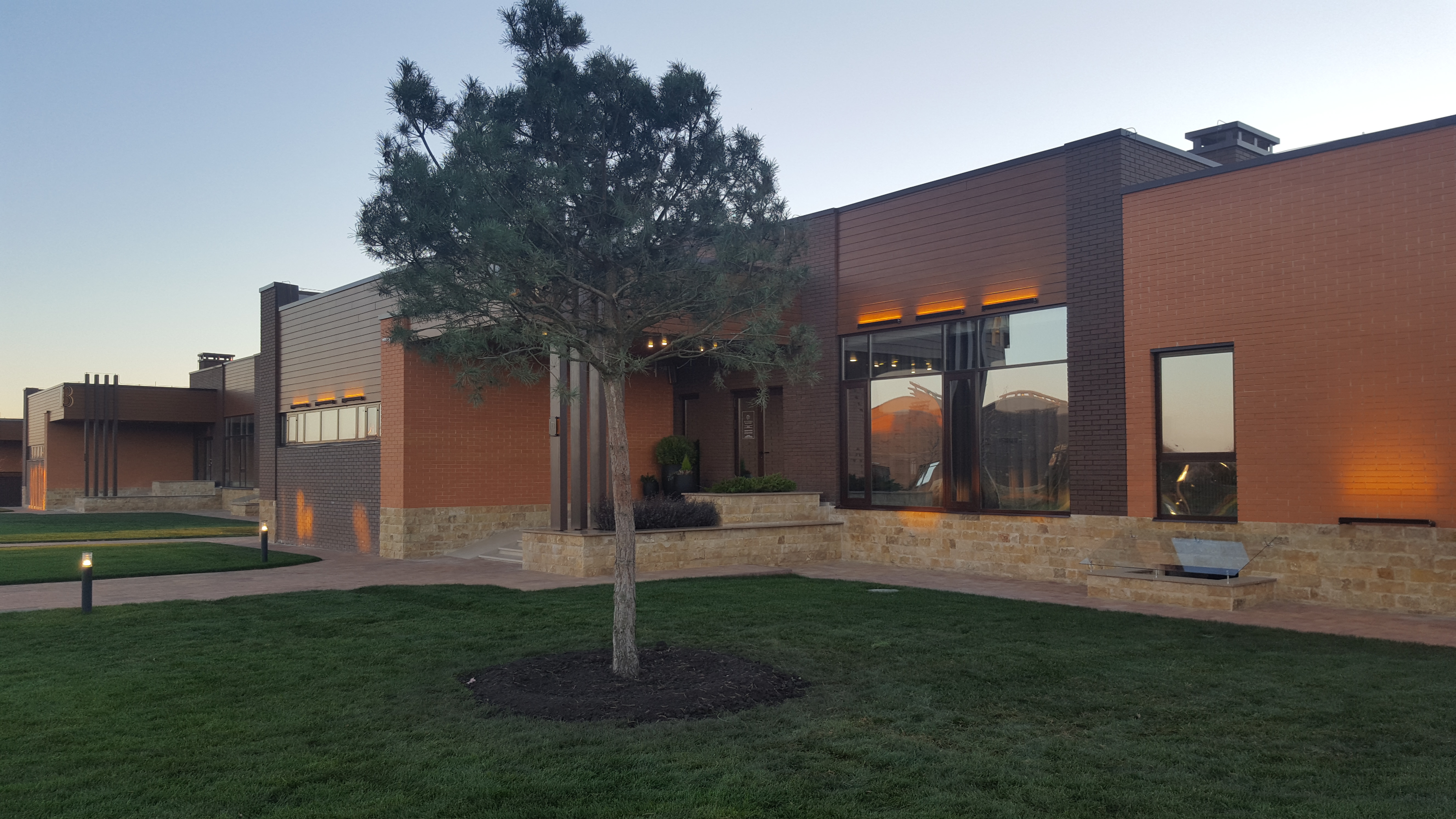 Использование специальных уличных светильников с разными углами рассеивания и цветовой температурой 3000К.